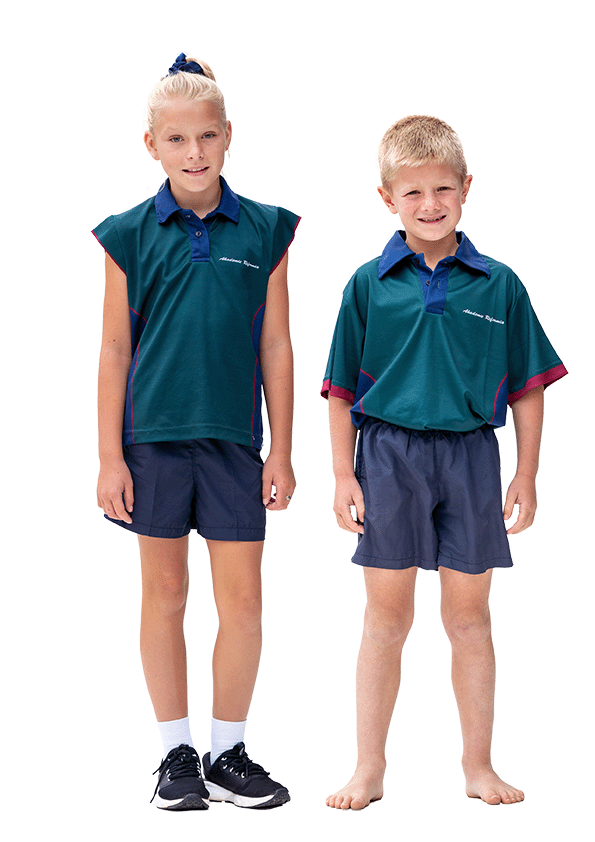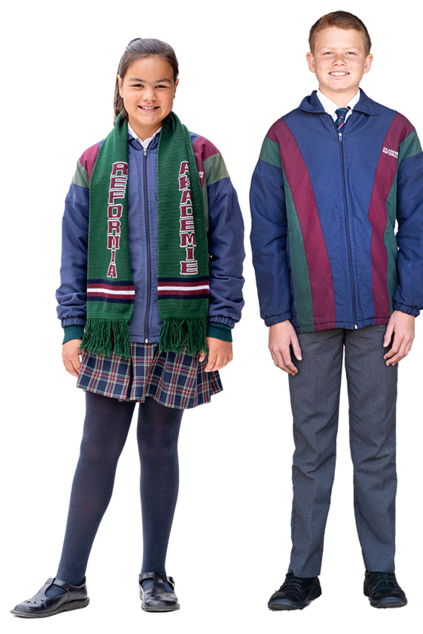 Skool kleure is maroen, groen en navy blou